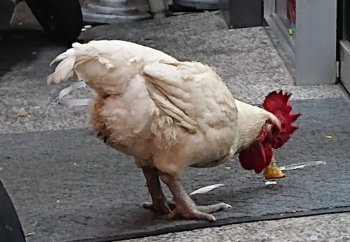原PO在《Dcard》表示,遠遠就看到這隻白雞在超商門口活動,當時他拍了幾張照片便離開現場,結果凌晨出門吃早餐發現牠還在,而且還跑到大馬路斑馬線上,看起來相當自在悠閒,整晚都在街頭散步且沿路吃吃喝喝。