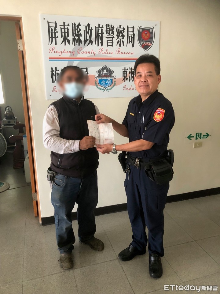 枋寮警分局東海所所長藍清輝,近日在派出所內,收到兩封現金信封袋,隨信並有一張紙條上寫著:「煩請藍所長轉交給那一位孝子,謝謝!您的義舉感動了我!」。