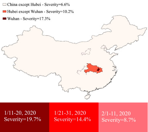 研究藉由中國疾病管制署發出的「2019年新型冠狀病毒疾病暴發的流行病學特徵」為資料來源,以中國三個地區 (武漢市、湖北省、中國其他地區) 及其三個時間段 (1月11日至20日、1月21日至31日、2月1日至11日) 的演進,來比較染疫醫護之重症百分比,及中國境內20-59歲受感染者中醫護人員的個案病死率。