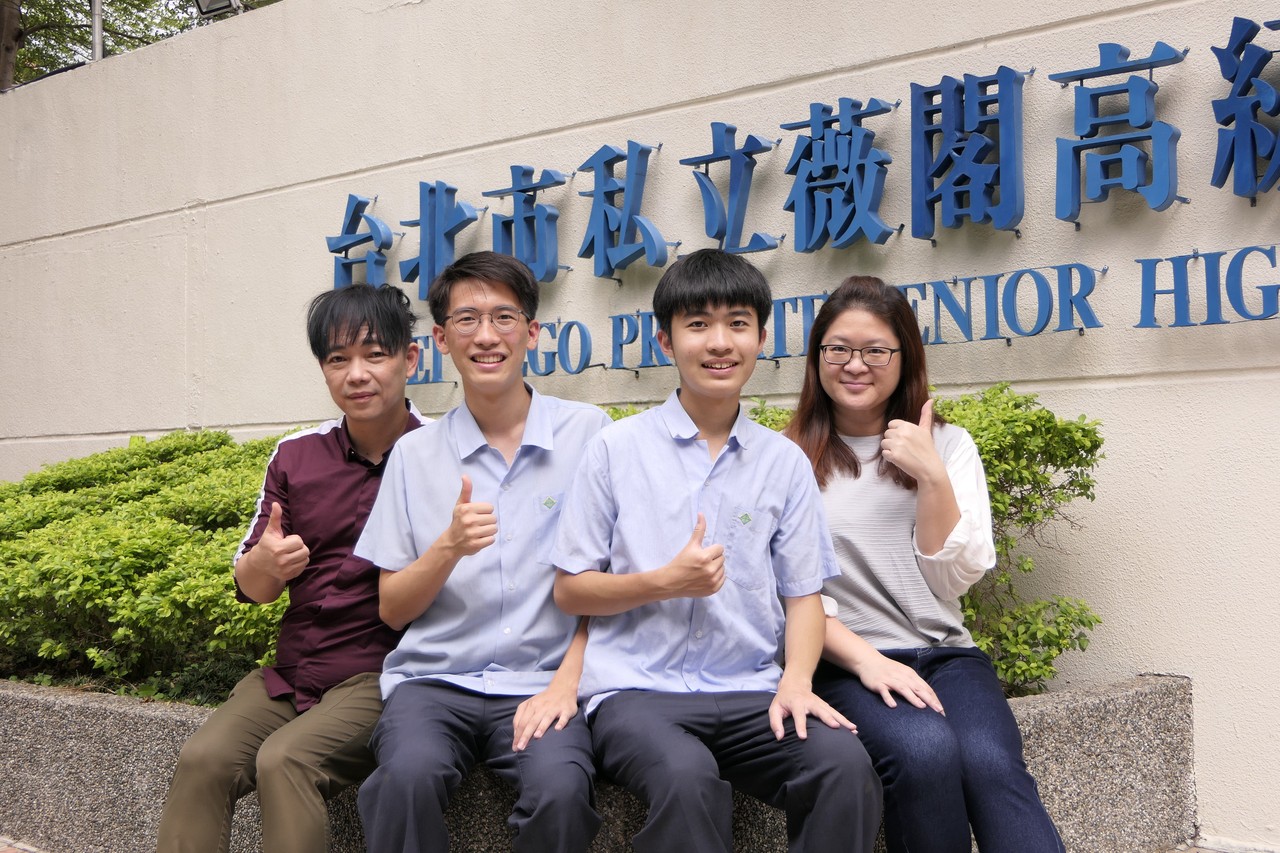 ▲左起導師黃端陽、陽明醫學系榜首陳威達、台大醫學系榜首吳柏宏、導師陳慧芳。(圖/薇閣高中提供)