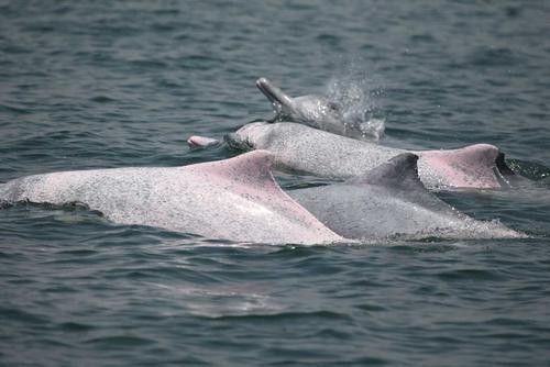 《澎湃新聞》報導,汕頭大學海洋生物研究所博士鄭銳強表示,科考過程發現,湛江海域硇洲島海域西南方向對開海域15海裡處及雷州灣東里鎮對出海域均發現成群白海豚出沒,兩處累計識別不同個體上百頭,「有灰黑色的小海豚,白色的成年海豚,還有粉色的老海豚。」
