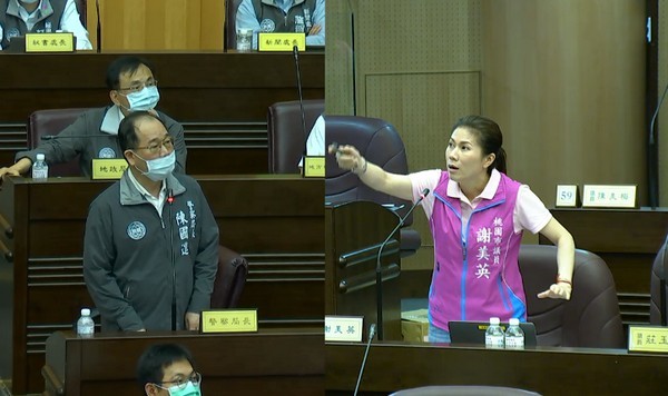 謝美英說,她的服務處接到多起民眾陳情指稱,中壢區部分路段交通號誌標示,根本是「違規陷阱」,讓駕駛人不知如何是好?並且對於接到的罸單,甚覺冤枉與不滿。謝美英以投影片播放一張張各種道路「違規陷阱」畫面,質詢交通局長劉慶豐、警察局長陳國進,希望兩局長重視,解決問題。
