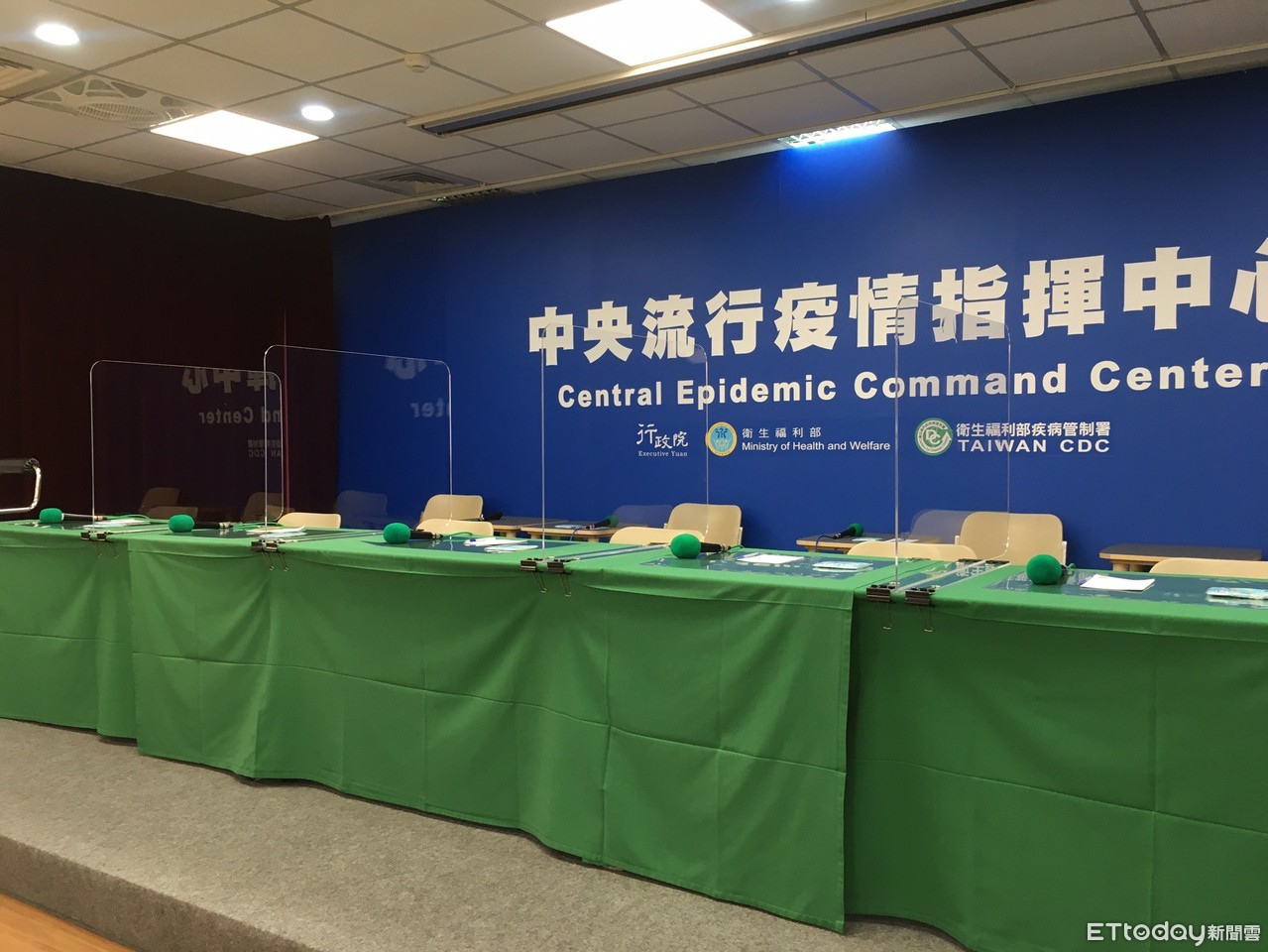▲指揮中心講台放透明隔板。(圖/記者洪巧藍攝)