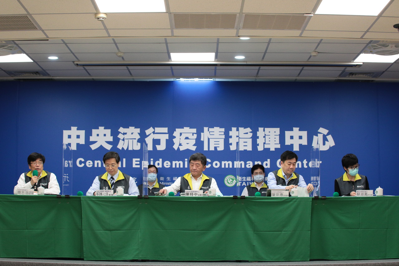 ▲指揮中心長桌放上透明隔板,指揮官陳時中(中)宣布5月12日沒有新增確診。(圖/指揮中心提供)