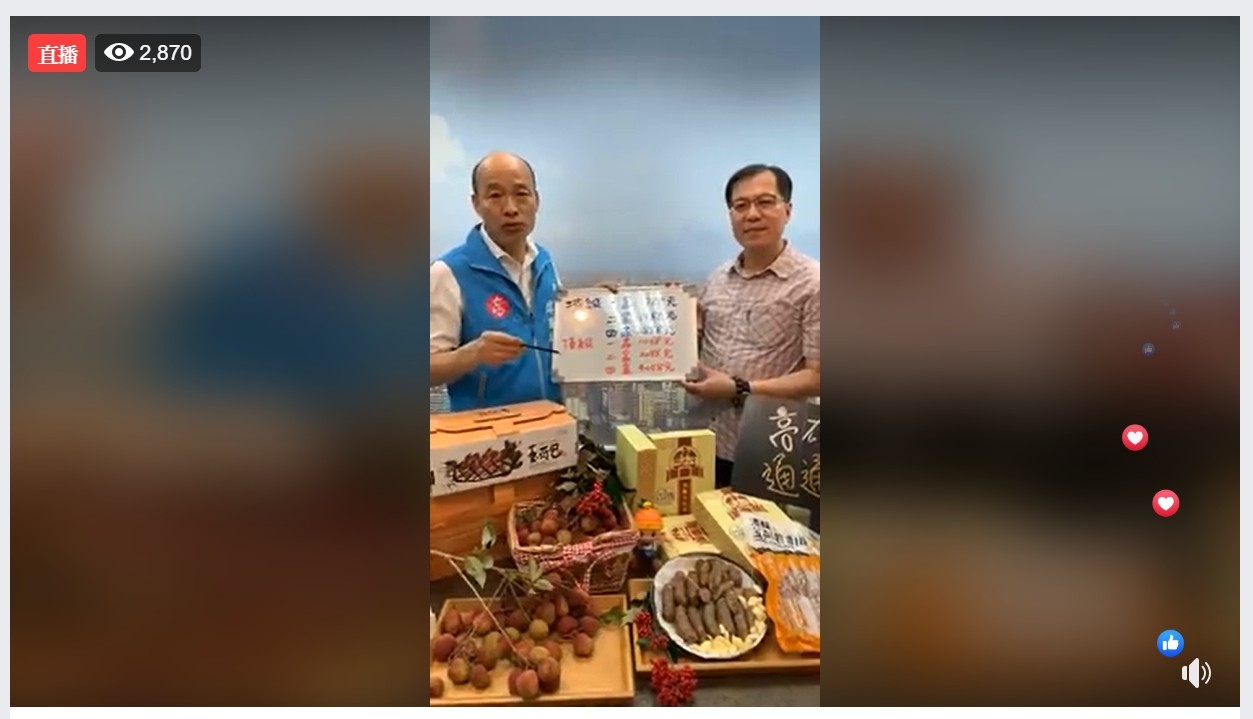 ▲韓國瑜與農業局長開直播推銷玉荷包。(圖/翻攝韓國瑜臉書)
