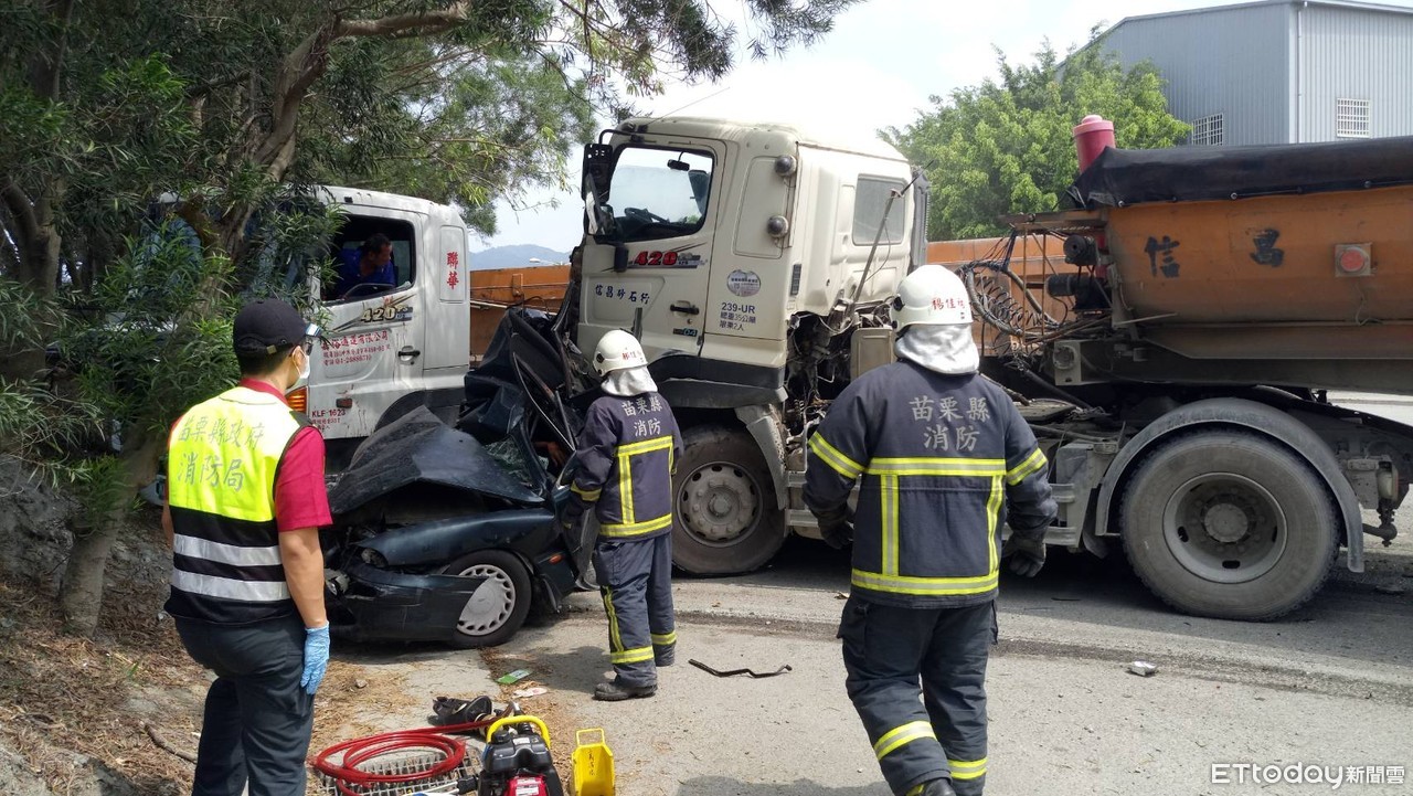 苗栗縣消防局獲報後,派遣多名消防隊員及車輛前往搶救,經動用破壞器材,花費約1個小時,陸續將小客車內的老翁夫婦救出送醫。老翁骨盆、下肢骨折,轉往加護病房治療中;老婦到院前無生命徵象,頭部多處血腫與撕裂傷,經搶救多時,還是傷重不治。