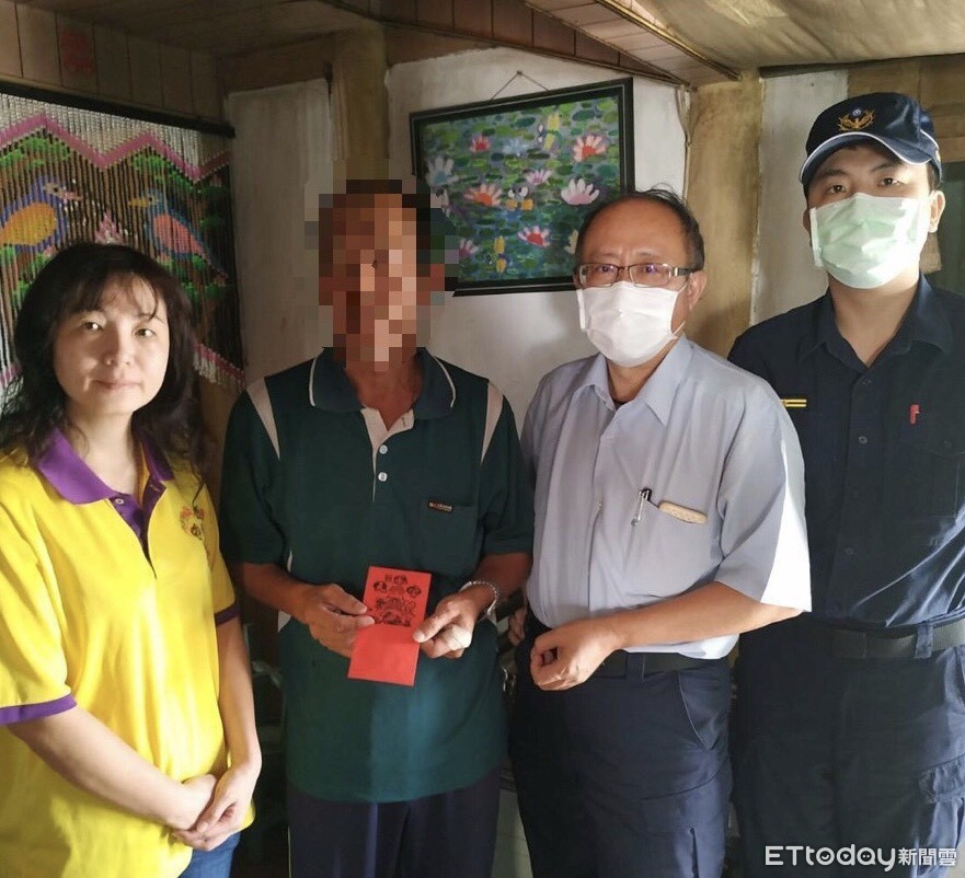 ▲新營天鳳宮代表林文華、黎明中學莊雅敏老師、新營分局交通組長王鼎欽共同前往慰問家屬,並致贈善款協助家屬度過難關。(圖/記者林悅翻攝)
