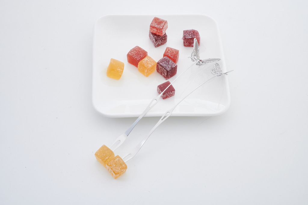 更別說在拿起纖長的點心叉帶來的驚豔──無論你平時如何豪氣萬千,手指會隨著薄鋼線條,自然展成高雅的捻花姿態,讓你僅僅是持拿著就已自帶古典優雅氛圍。而當你想領著它叉向點心時,彎長如枝的叉上花蝶,即如有風徐來般搖曳波蕩,更添享食之樂。