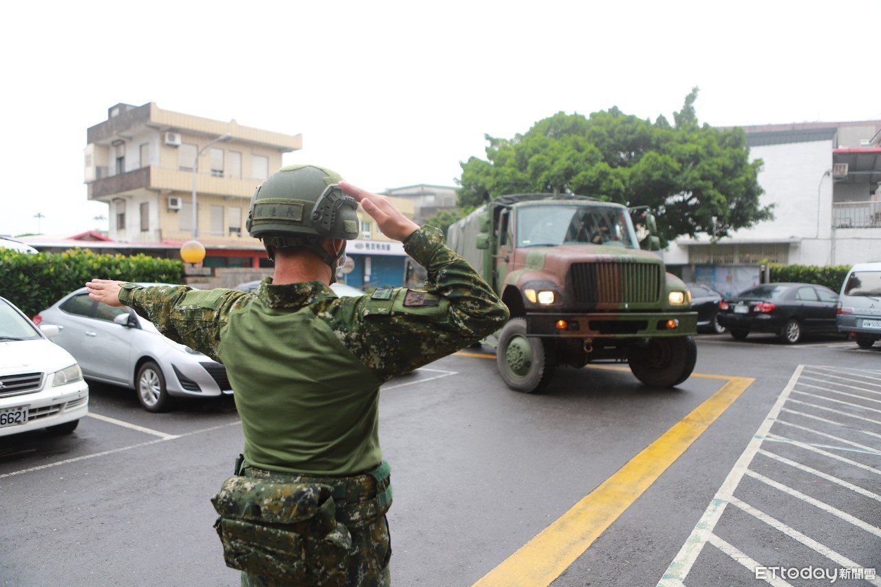 ▲▼梅雨鋒面致災性豪大雨威脅,19日下午,陸軍蘭指部161名兵力、18車輛、3膠舟等進駐宜蘭防災。(圖/記者游芳男翻攝,下同)