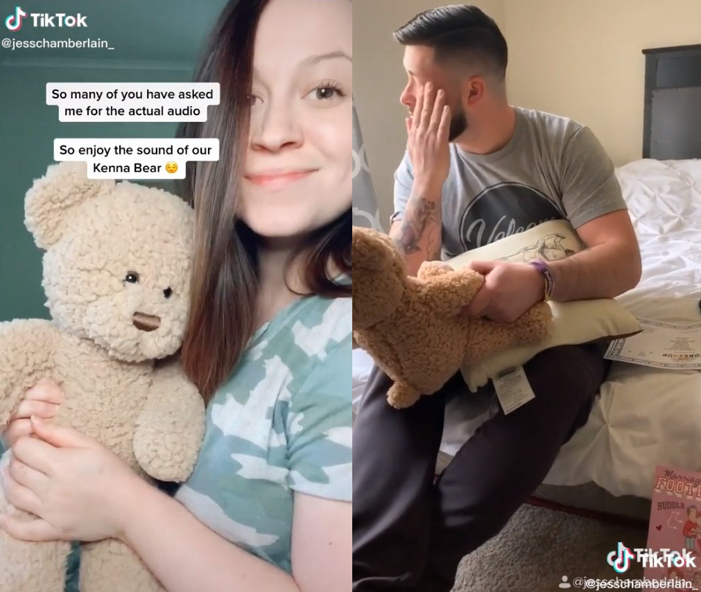 潔西卡表示為了給老公一個驚喜,她到了一間製作熊娃娃的公司,將女兒的錄音檔放入娃娃的體內,最後再將這隻被命名為「肯納熊(Kenna Bear)」的娃娃轉交到老公手上。