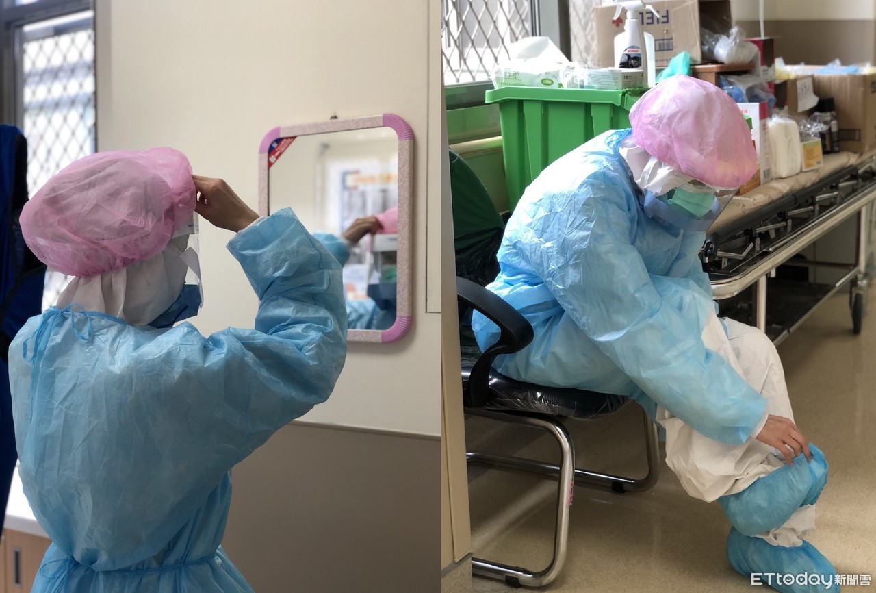 ▲雖然已多次練習穿脫兔寶寶裝,但心裡仍有緊張的時候。(圖/護理公會全聯會授權提供,未經同意請勿任意翻攝,下同)
