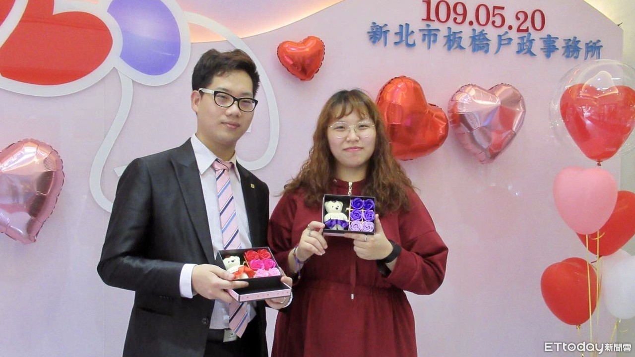 今天是「520」,2020年5月20日因諧音「愛你愛你我愛你」,未受疫情影響,成為今年最熱門的結婚登記日。新北市板橋戶所統計20日共有163對辦理結婚登記,截至下午8點統計,同性6對,異性157對,現場洋溢幸福氛圍、快樂歡笑聲不斷。