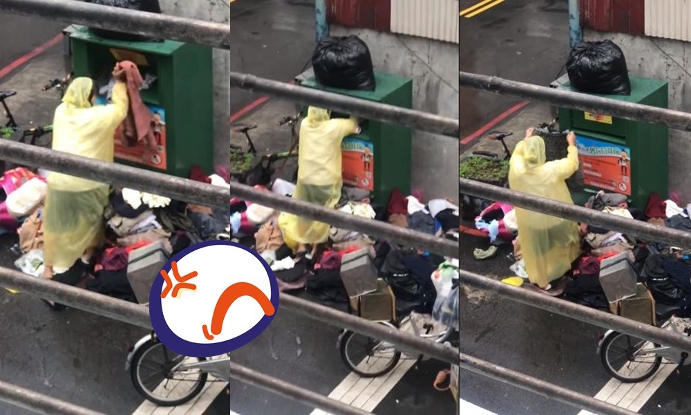 「請問我可以舉發她嗎?」一名女網友日前在臉書《爆廢公社公開版》貼出一段影片,只見她拍下一位雨衣女正在狂撈舊衣回收箱,不僅整個人趴到桶子上翻衣服,看到喜歡的就收起來,不喜歡的幾乎直接被扔地上,讓她氣呼「可不可以有點同理心。」其他人看了也直罵,「生活不好過也不能這樣啊!」