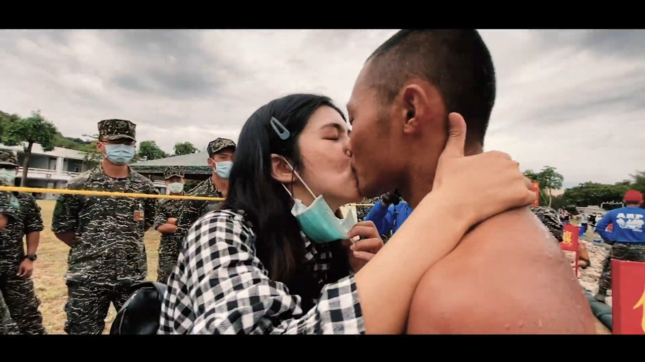 教官見狀說「再給你看一次」,學員立刻衝到女友面前,大聲喊出「我愛妳」後隨即深吻。此時,教練要女友叫男友回到天堂路,女方才不捨地推開男友,看著另一半繼續撐完訓練。