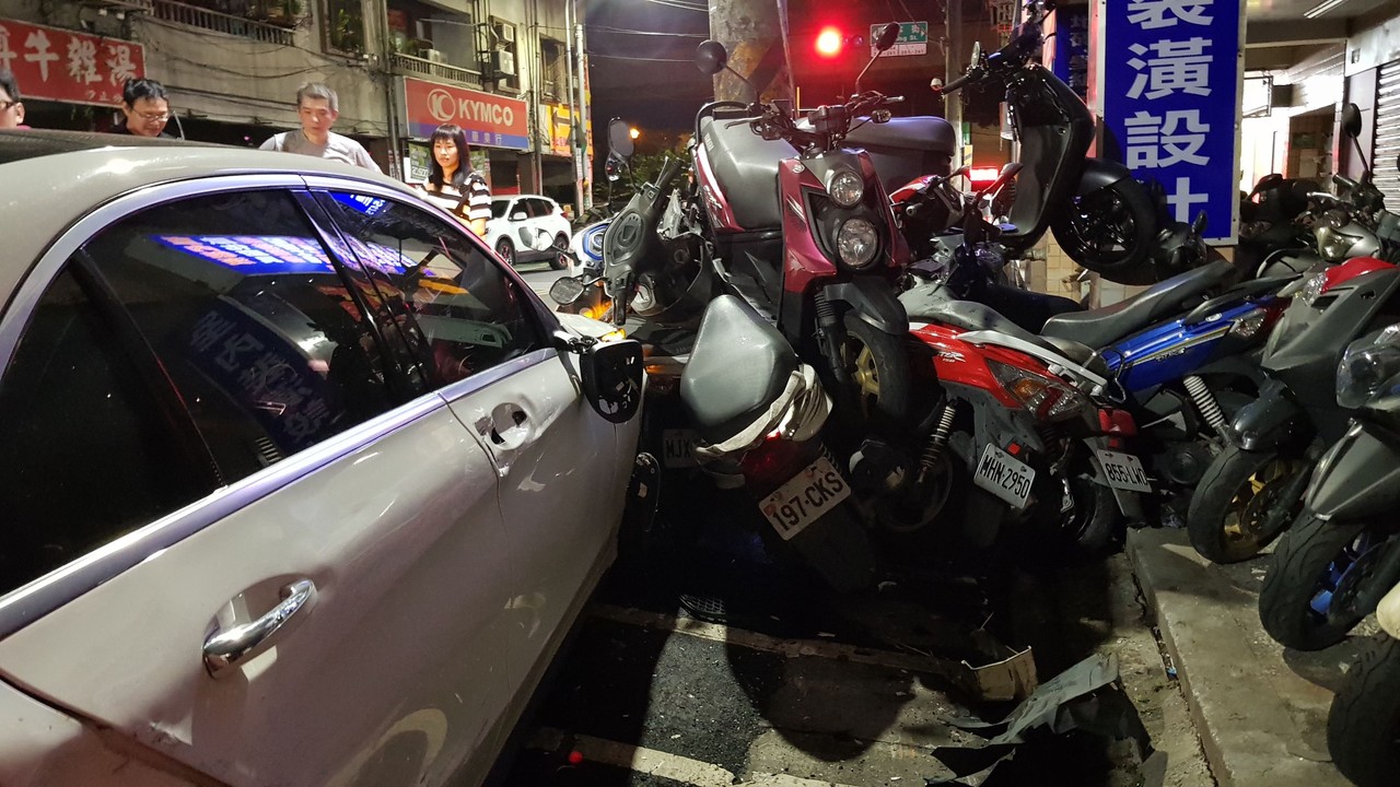 其中,至少6輛機車因強大的撞擊力,被固定在一旁的電線桿上,彷彿成為裝置藝術般放射性卡住,另台BMW也被撞凹。沒想到,施男車禍竟棄車,想搭計程車逃逸,最後還是被警方抓回。