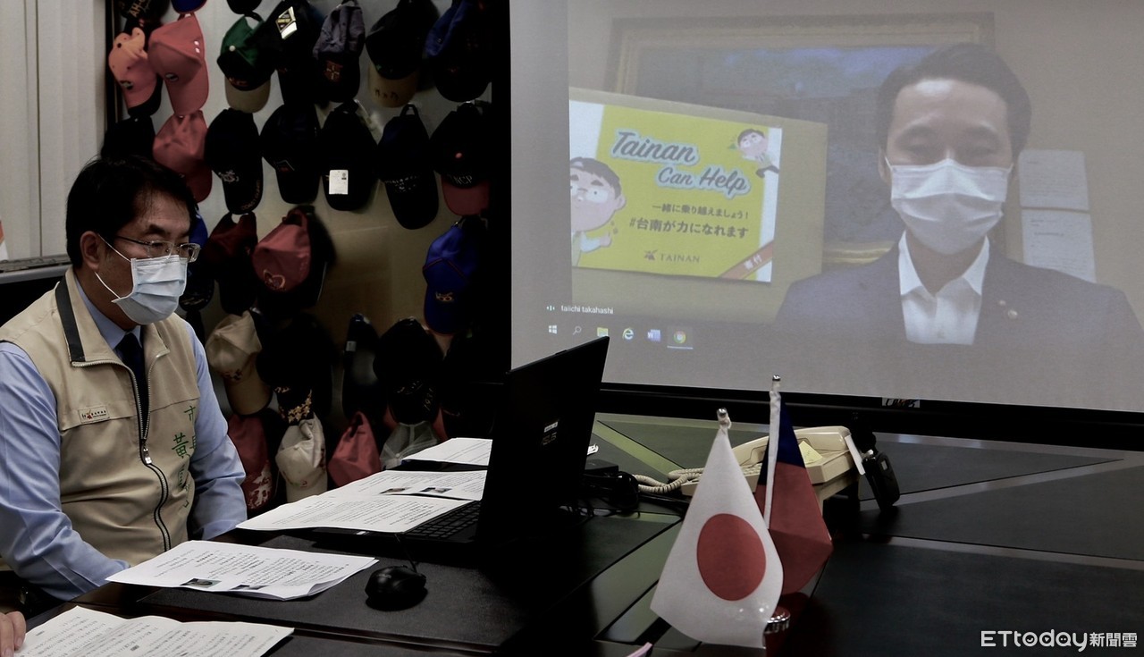 台南市長黃偉哲心繫日本疫情,日前寄出護目鏡跟口罩墊片等醫療防疫物資至包括山形市、青森縣、滋賀縣等日本9個友誼城市以及7個友好城市,以實際行動推展「Tainan Can Help」的溫暖援助,獲得各城市給予正面回饋,因應疫情關係,日本友誼市山形市佐藤孝弘市長以視訊的方式,22日向黃偉哲市長表達感謝。