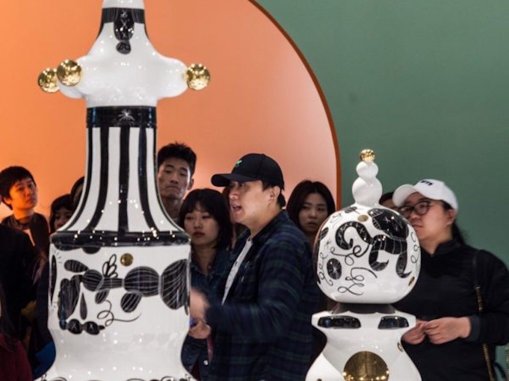 ▲「亞米海因的設計狂想」上海站,陳仕剛於開展首日進行特展導覽說明。