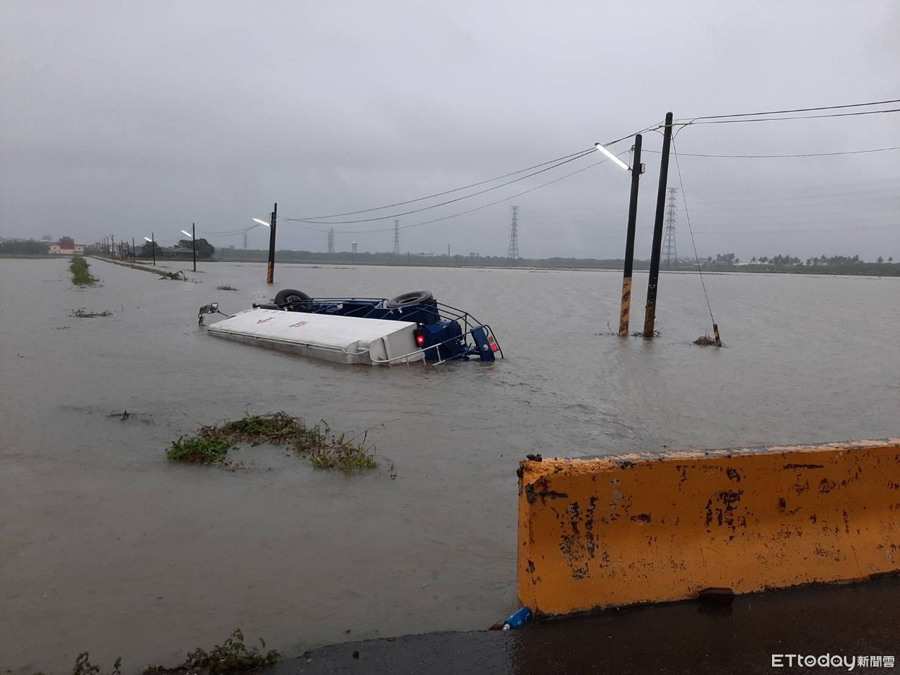 ▲貨車翻覆水溝。(圖/記者陳崑福翻攝,下同)