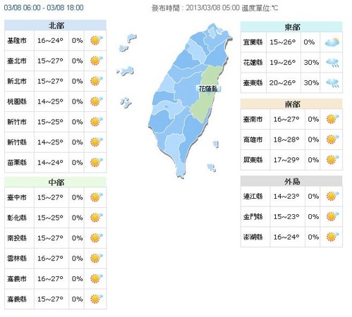 另外,中央氣象局表示,8、9日兩天台灣各地及澎湖、金門、馬祖大多為多雲到晴的天氣,僅東部及東南部地區有局部短暫雨。