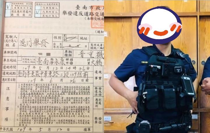 ▲一張絕美罰單爆紅台南帥警長相曝光。(圖/翻攝爆廢公社二館,下同)