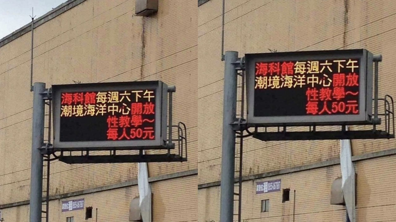 一名網友在「爆笑公社」臉書社團貼文,指出「請踴躍參加」,大型字幕機顯示,「海科館每週六下午,潮境海洋中心開放性教學~每人50元」,引發網友熱議,紛紛留言表示:「上課50元,旁聽可以免費嗎?」、「約起來」、「真便宜」、「請抽好號碼牌」、「身教大於言教,如果要免費收費,麻煩派人服務!」