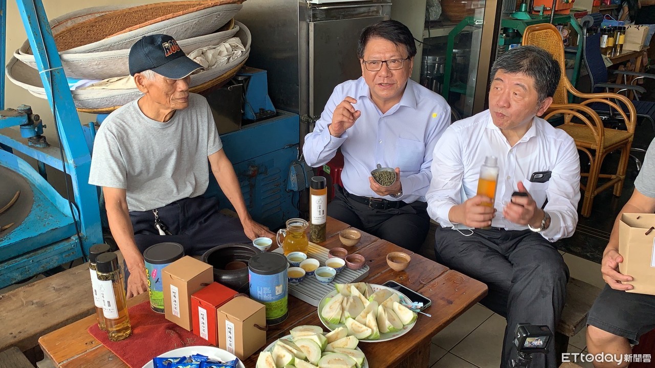 ▲全台唯一用海風種的茶!陳時中品嚐「港口茶」直呼滑順潤喉。(圖/記者嚴云岑攝)