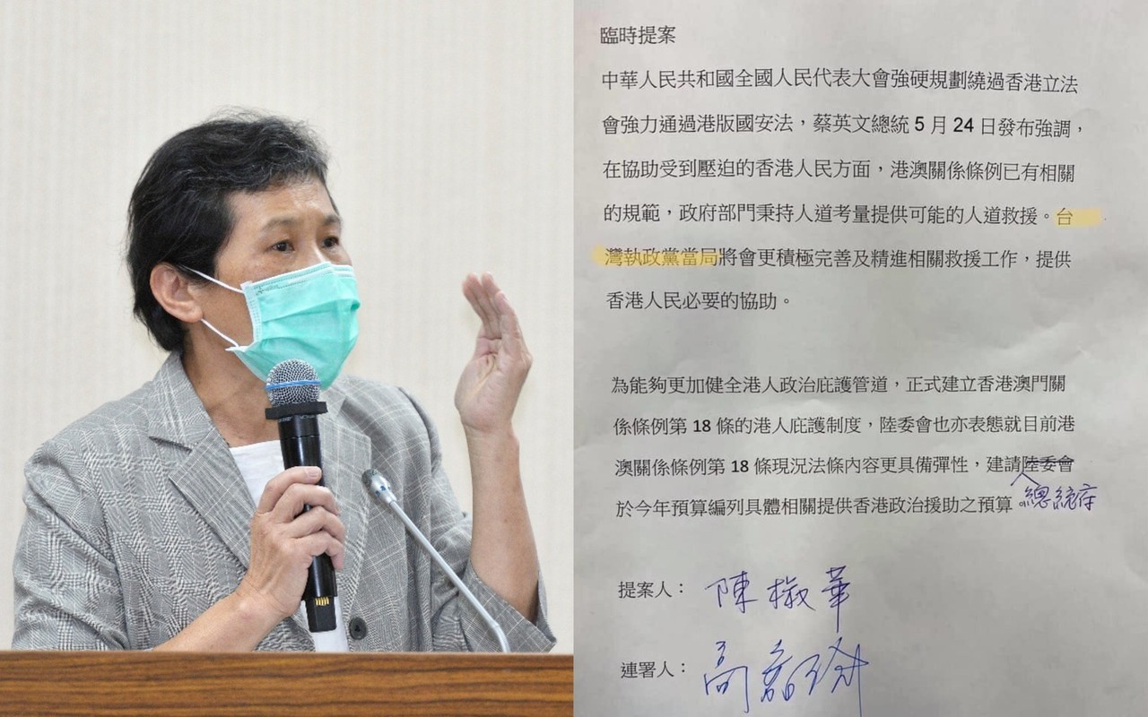 陳椒華臨時提案指出,針對中共強力推動《港版國安法》,「台灣執政黨當局」將會更激及完善及精進相關救援工作,提供香港人民必要協助;而這份提案也有民進黨立委高嘉瑜的連署簽名。