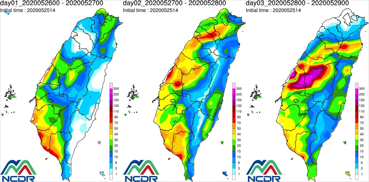 前預報中心主任吳德榮在《三立準氣象》中預報,這波滯留鋒面結構有差別,上周的梅雨鋒面有段時間配合較強西南氣流,在屏東帶來上千毫米的雨量,這一波少了西南氣流,28、29日在南北徘徊,總雨量不至於那麼強,但在台灣附近帶來不穩定的天氣,雷雨胞、中尺度對流發展下容易出現劇烈天氣,降雨主要都是陣雨,雷擊大雨連續下2、3小時仍容易淹水,一直到30日(周六)才整個脫離。