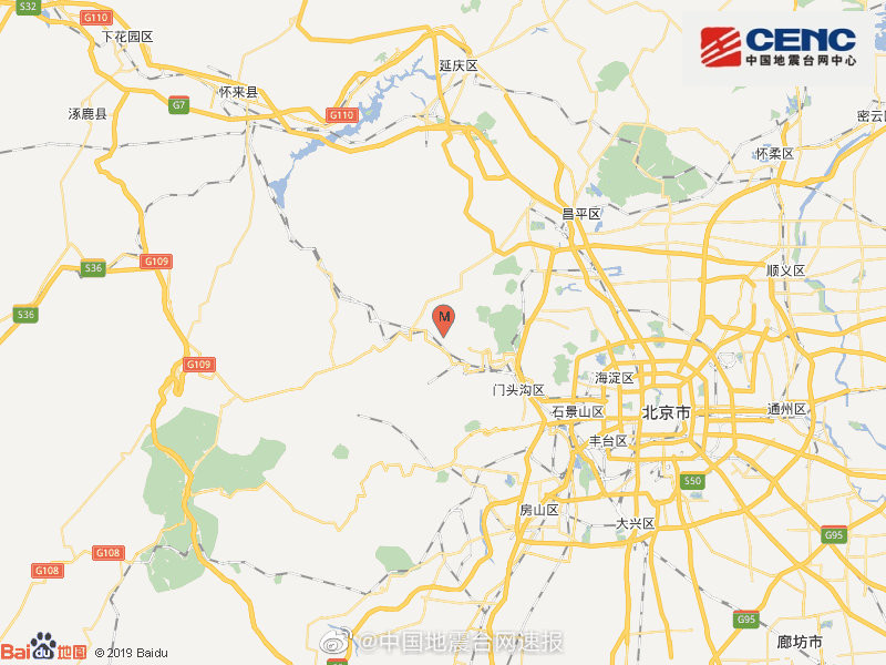 根據中國地震台網正式測定,26日0時54分在北京市門頭溝區發生規模3.6地震,震央深度18公里。有網友回報稱,「我椅子晃了3下」、「有震感」、「床晃的好明顯,嚇人」。