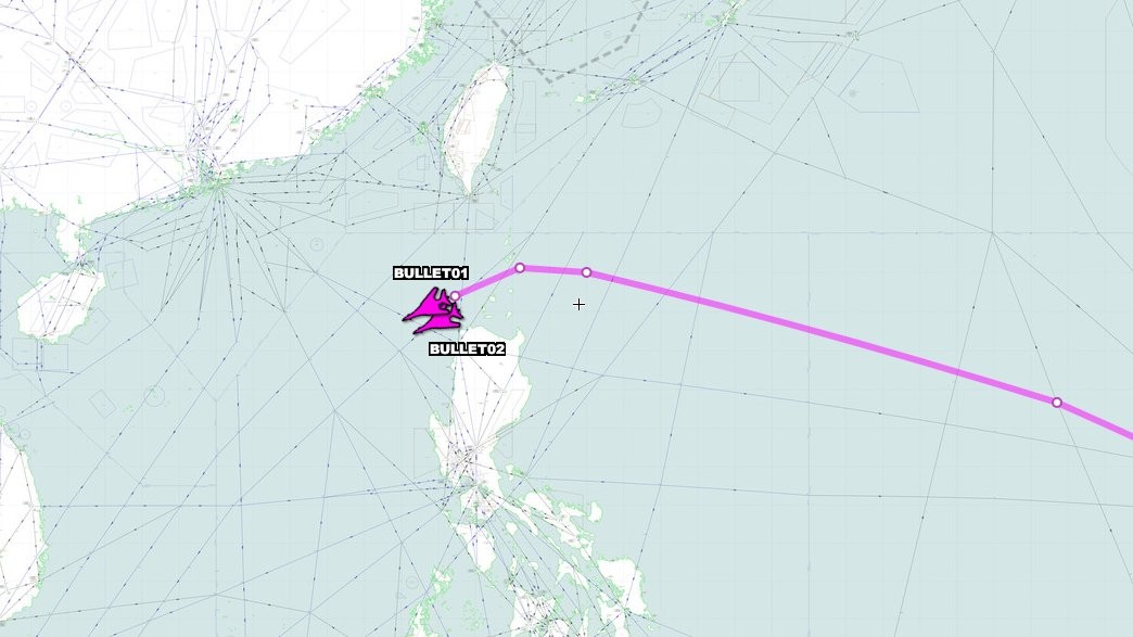 該推文披露,美軍2架B-1B「槍騎兵」超音速轟炸機( BULLET01 & 02)自關島「安德森空軍基地」(Andersen Air Force Base)起飛,往西北飛行至巴士海峽南端後,轉向飛往南海巡弋,而途中由KC-135R加油機進行空中補給油料。