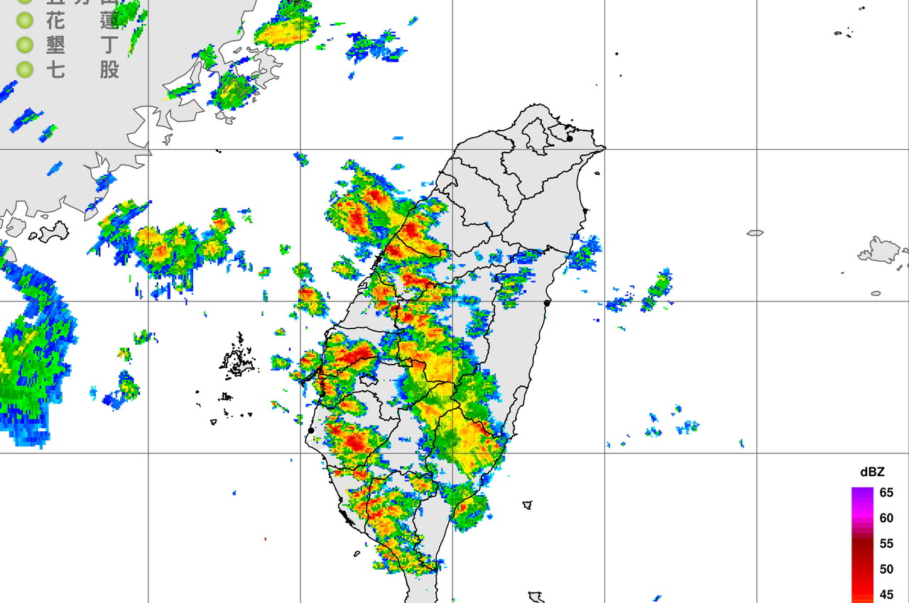 ▲根據中央氣象局雷達回波圖,陸續有對流從台灣海峽移入,正影響中南部地區。(圖/氣象局)