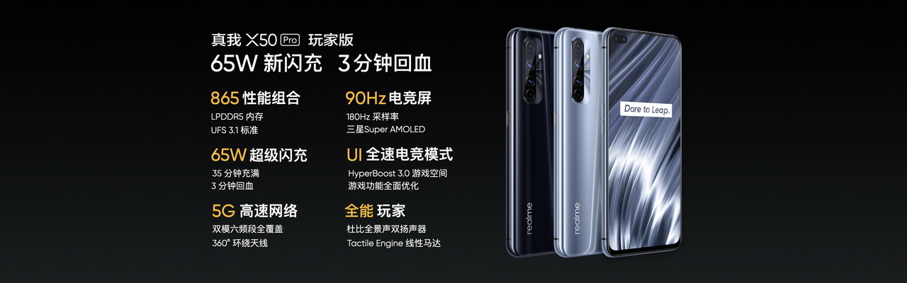realme昨(25)日在中國市場發表了realme X50 Pro玩家版新機;這款新機是為了手遊玩家所打造的高性能旗艦產品,其採用了高通S865處理器,內建LPDDR5記憶體,並首次搭載了UFS 3.1快閃記憶體儲存;realme認為,這三者所組成的「性能黃金組合」,具有目前5G旗艦手機性能的最高水準。