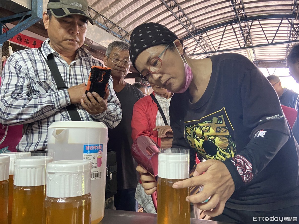 ▲一瓶瓶澄黃色的蜂蜜自己生產,社區夥伴們個個笑得合不攏嘴。(圖/台東林管處提供,下同)