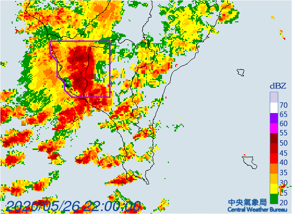中央氣象局26日深夜10時12分針對高雄、屏東2縣市發布「大雷雨即時訊息」,將持續至10時45分,受旺盛對流發展影響,劇烈降雨伴隨雷擊,並可能出現較強陣風或冰雹,低窪地區慎防淹水。10時30並針對新竹以南12縣市發布「大雨特報」,晚間至27日將有局部大雨發生機率,請注意雷擊及強陣風。