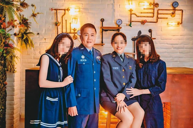 ▲吳智泰(左2)「內舉不避妻」,每半年就推薦老婆(右2)升上校,引發爭議。