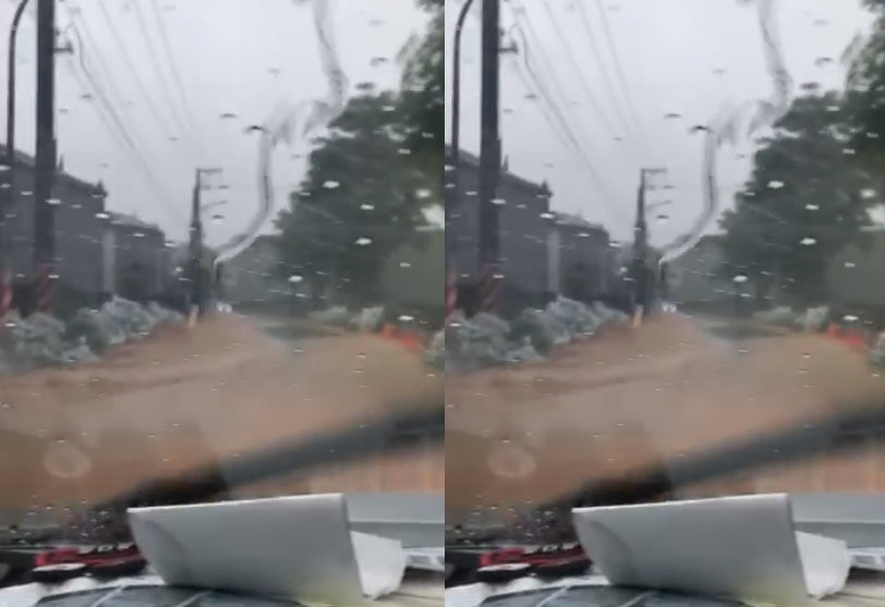 有網友在「高雄小港區的大小事」臉書社團發文,貼出小港森林公園的淹水畫面,「快淹上來了,別好奇靠近哦,容易跌落…」另也有人貼出大坪頂往大寮新厝路的淹水情形。也有臉書粉絲團PO出一段影片,只見駕駛開車行經一片滾混濁黃泥水的路面,車內女子直呼「哇哇哇,塌了塌了」,駕駛則說「一定塌的。」