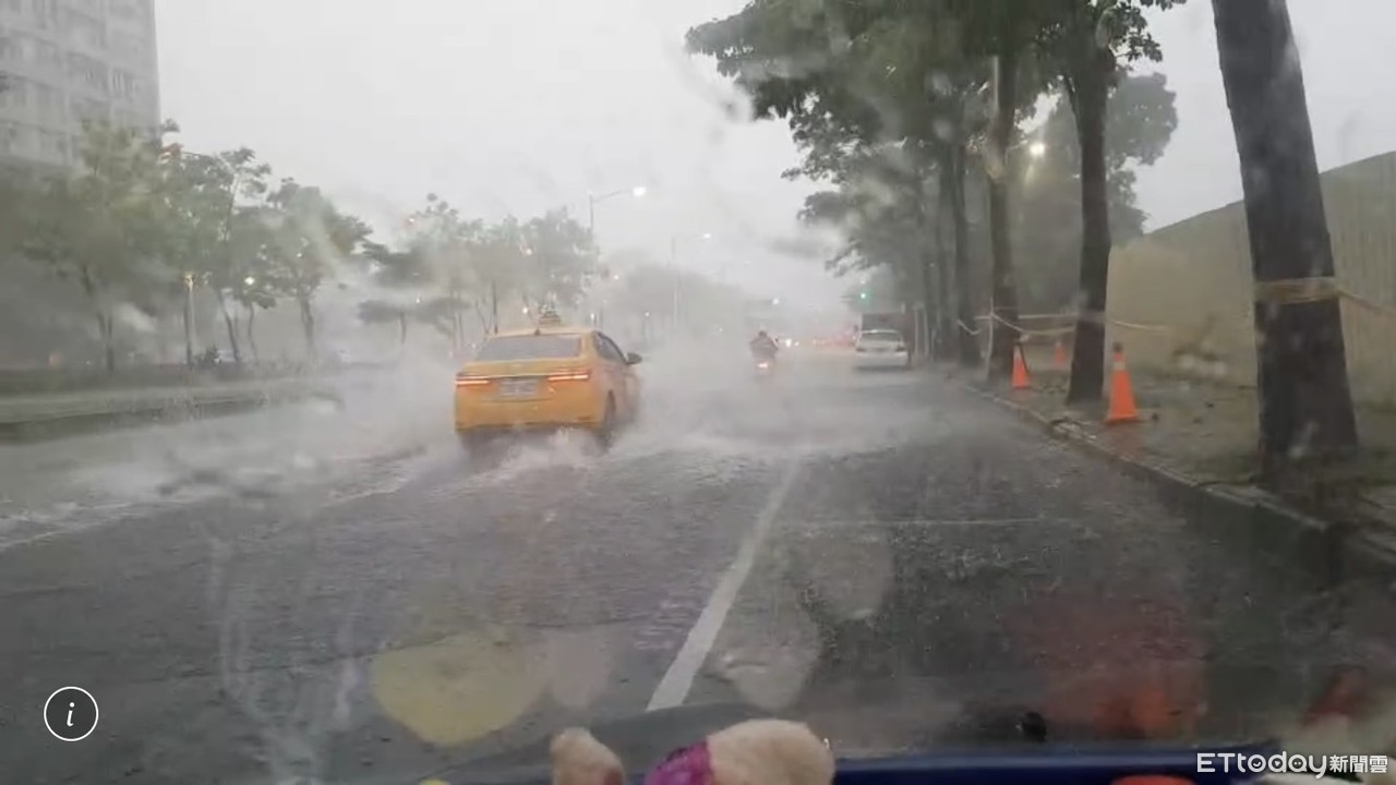 而在高雄市區凱旋路,也因為大雨路面淹水,機車騎士和汽車駕駛經過,都濺起了很大的水花!而且路面上的積水,隨著持續降下的雨勢,持續升高當中,民眾經過都小心翼翼,險象環生。