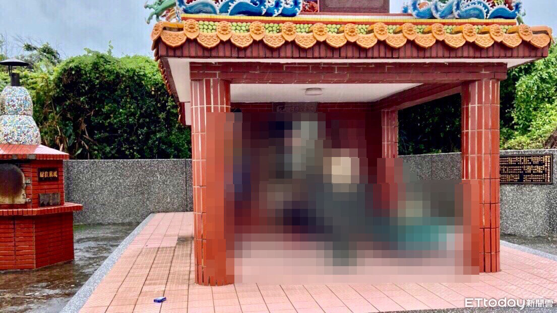 ▲ 新北石門土地公廟前驚見男上吊輕生,清晨運動民眾驚嚇過度腿軟報警。(圖/記者郭世賢翻攝)
