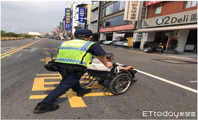 校姓警員勸導李男由於無法自理生活且三餐不定,徵詢他意願後,同意到街友服務中心生活,最後陳員用輪椅將渠推往遊民中心處安置,才放心離開。
