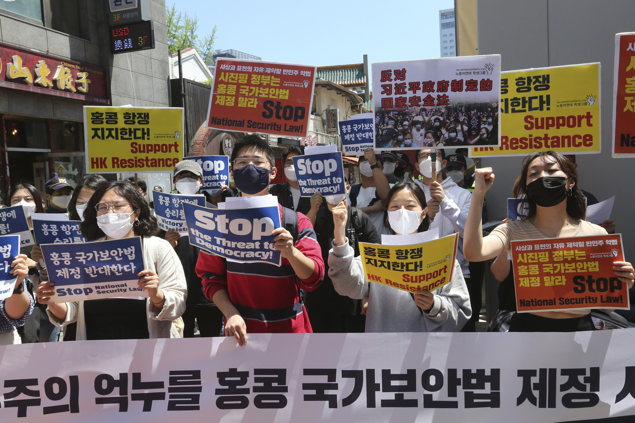 根據韓媒《朝鮮日報》,延世大學、韓國外國語大學、中央大學的學生在駐韓使館前,手持寫著「堅決反對制定打壓香港民主的國安法」、「引領香港抗爭走向勝利」等標語的橫幅、看板,認為制定國安法之舉是在打壓國內異議人士,向北京當局表達強烈抗議。