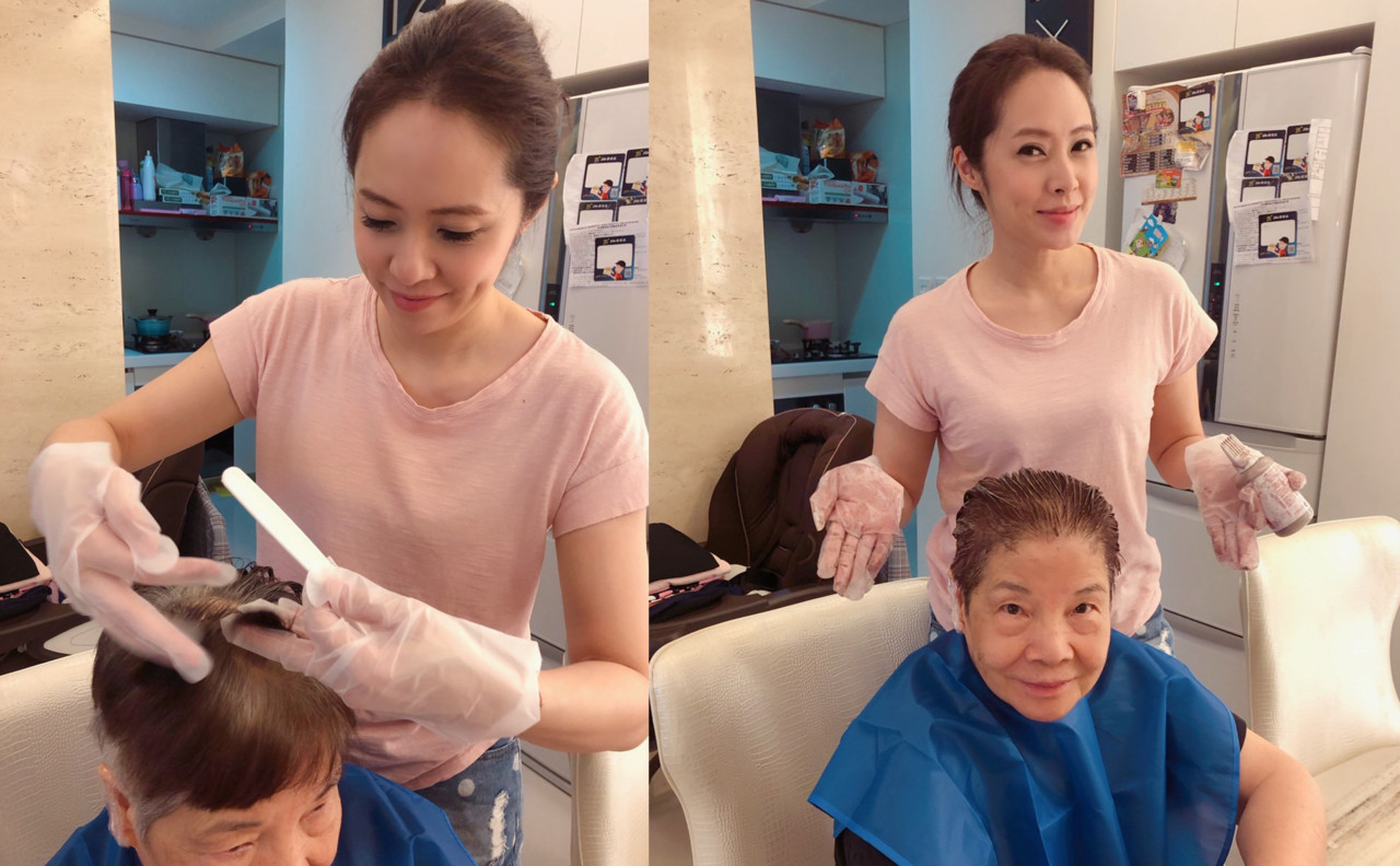 ▲洪百榕宅在家期間化身魔髮師,親手幫媽媽染髮。(圖/翻攝自宋達民和洪百榕愛的粉園,下同)