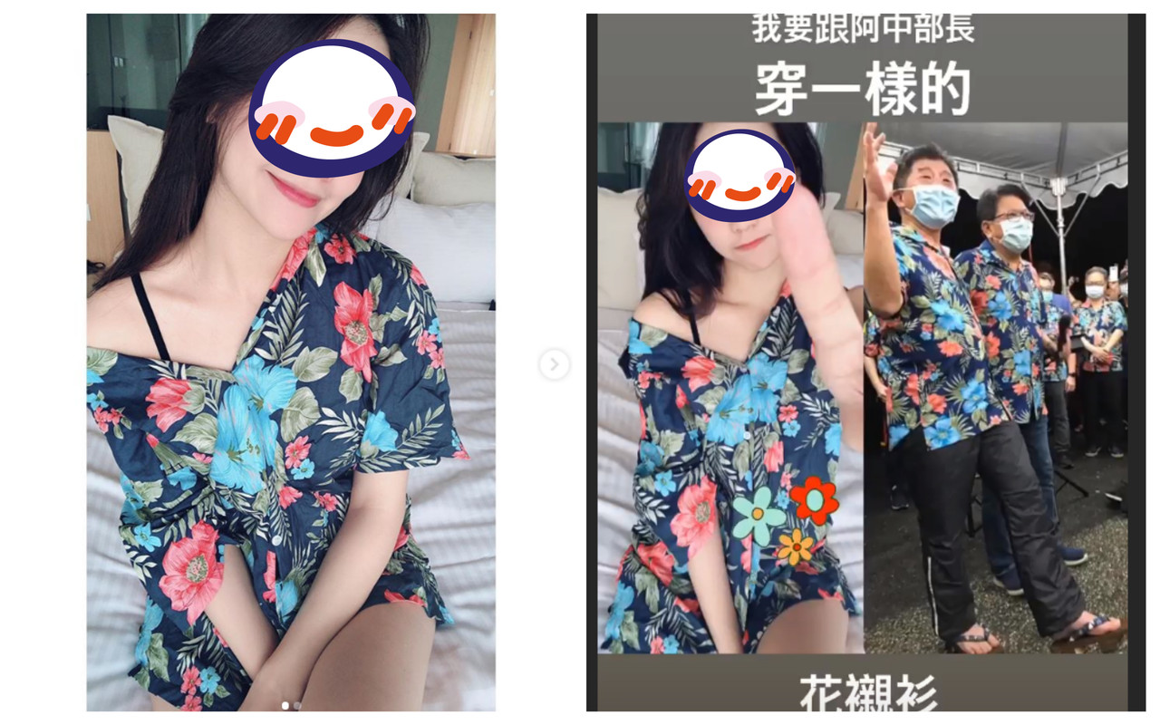 網美空姐莎莉在IG上PO出自己花襯衫穿搭照表示,阿中部長的花襯衫、莎莉的花襯衫,可以一起轟動嗎。另外她還用hashtag標記,「我臺灣我驕傲」、「我屏東我驕傲」、「防疫五月天」、「防疫新生活」等熱門口號。