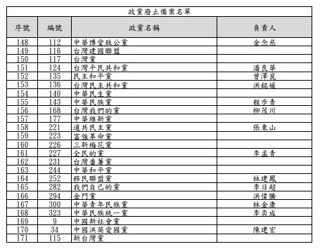 ▲內政部今年公布171個遭廢止備案的政黨名單。(圖/內政部提供)