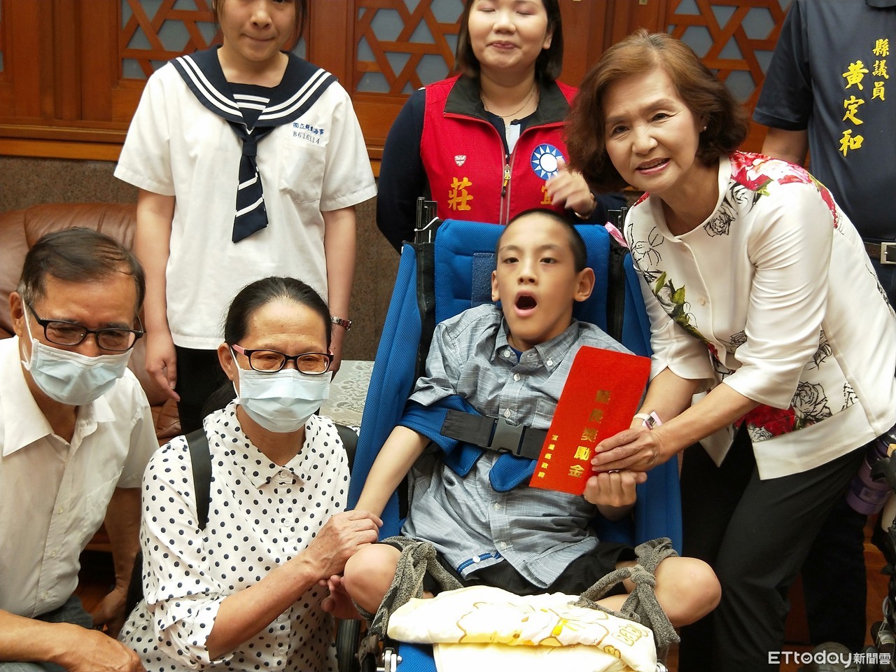 ▲生命鬥士的宜蘭囝仔胡浩(右2)獲總統教育獎,28日獲宜蘭縣長林姿妙表揚。(圖/記者游芳男攝)