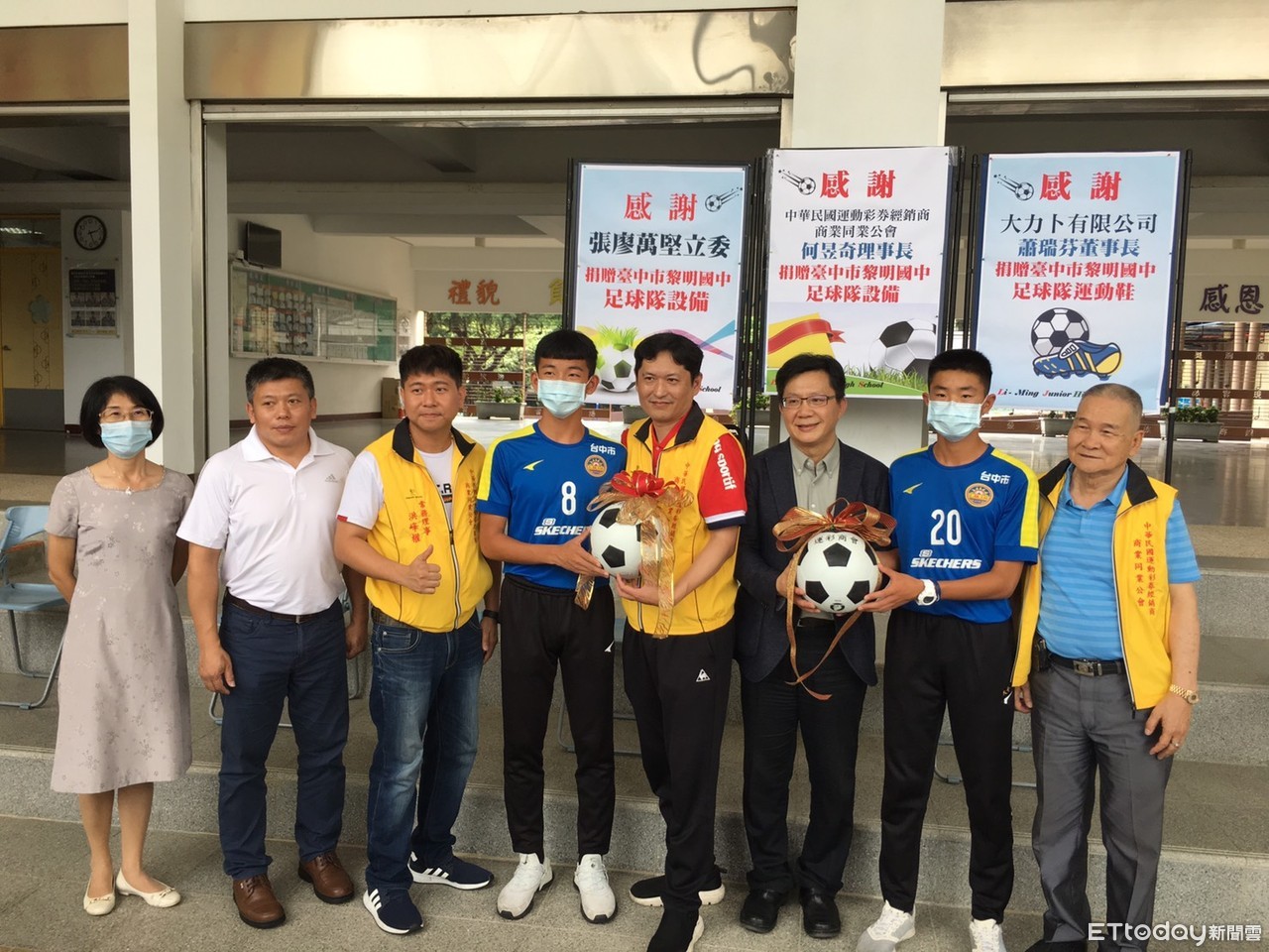 在新冠疫情影響下,不少重大的國內外賽事取消,相較以往球場人山人海的加油團景況,如今顯得相當冷清,為了不使基層運動選手的士氣受到打擊,立委張廖萬堅和運彩公會等人28日捐贈台中市黎明國中、黎明國小足球隊足球及運動鞋,勉勵孩子繼續努力,為國增光。