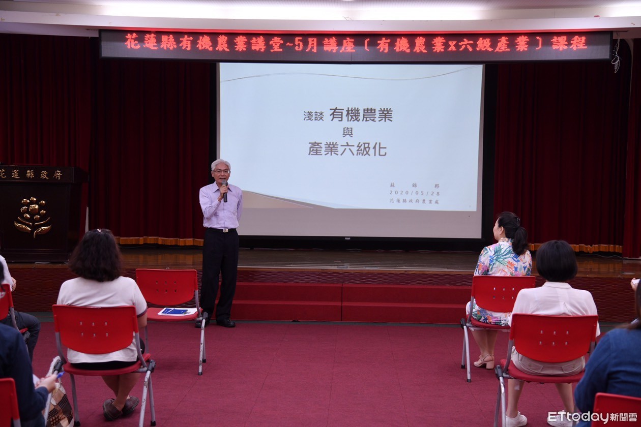 花蓮縣有機農業促進專案辦公室28日在花蓮縣政府大禮堂舉辦「淺談有機農業與六級產業」課程,特別邀請中原大學客座教授蘇錦夥分享六級產業(體驗經濟)概念,將農業經濟融合工業經濟與服務經濟,導入1x2x3級的跨領域創新營運理念,相輔相成發展為六級產業,打造具有文化美學與歷史人文,將花蓮純淨無汙染有機農業品牌形象深植人心。