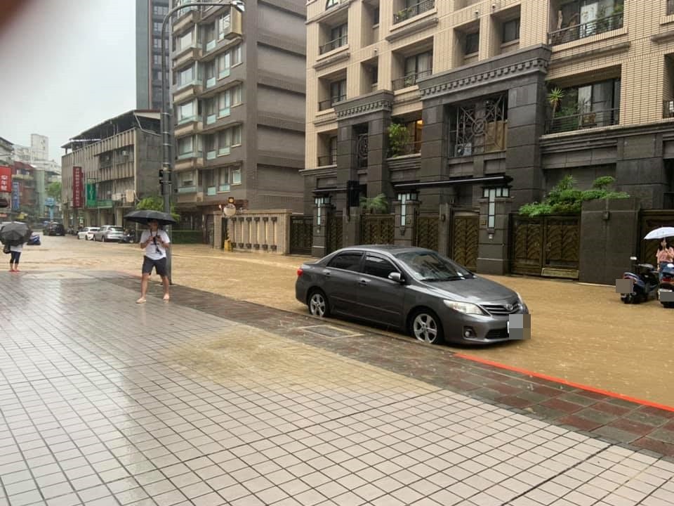 ▲台北市文山區興隆路四段大淹水,用路人涉水前進,車子慘拋錨。(圖/翻攝臉書)