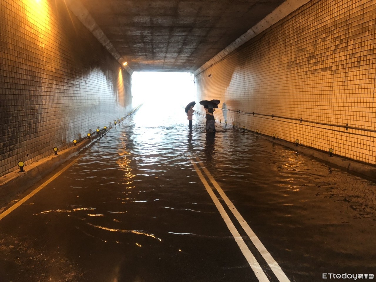 新店區中興路地下道就發生淹水災情,一度淹到膝蓋的高度,新店警方為了維護行車安全,已經該路段派員警管制,區公所人員也到場警戒,提醒民眾要繞道而行,並注意行車安全。