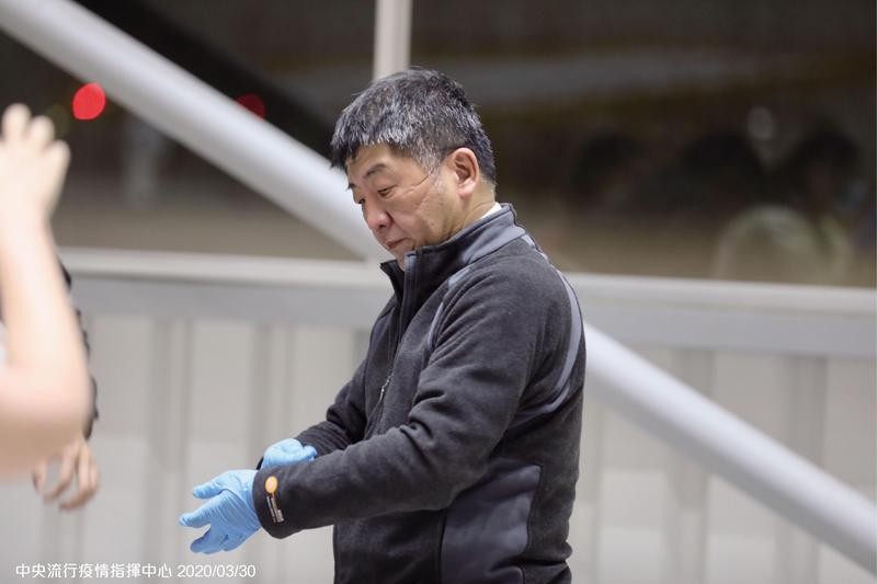 ▲第三批武漢包機返台,陳時中坐鎮採檢,摘下口罩時臉上都是壓痕。(中央流行疫情中心提供)