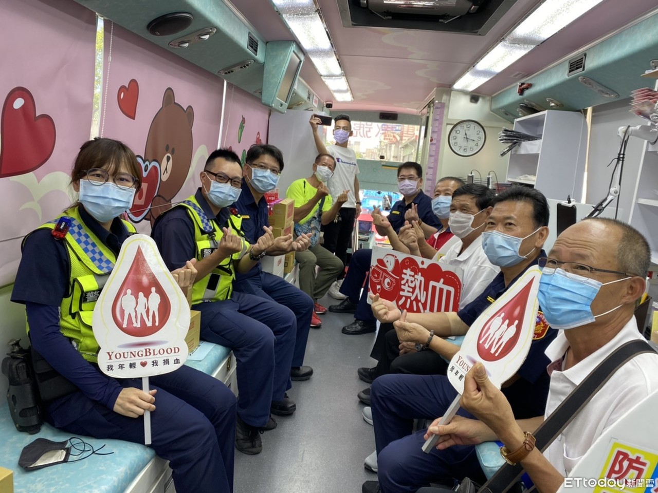 ▲台南市永康分局長呂世明及內外勤主管帶頭,與員警、民眾一同挽袖捐血,共獲得213袋,為匱乏的台南血庫注入熱血。(圖/記者林悅翻攝,下同)